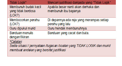 Guru memberi situasi atau pernyataan seperti di bawah agar murid dapat memikirkan andaian yang bersifat justifikasi: